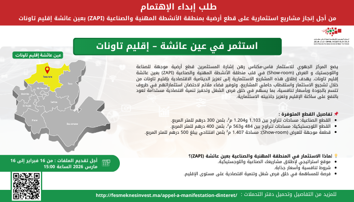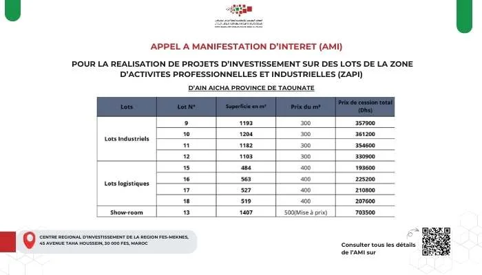 AMI pour la réalisation de projets d’investissement sur des lots de la zone d’activités professionnelles et industrielles d’Ain Aicha